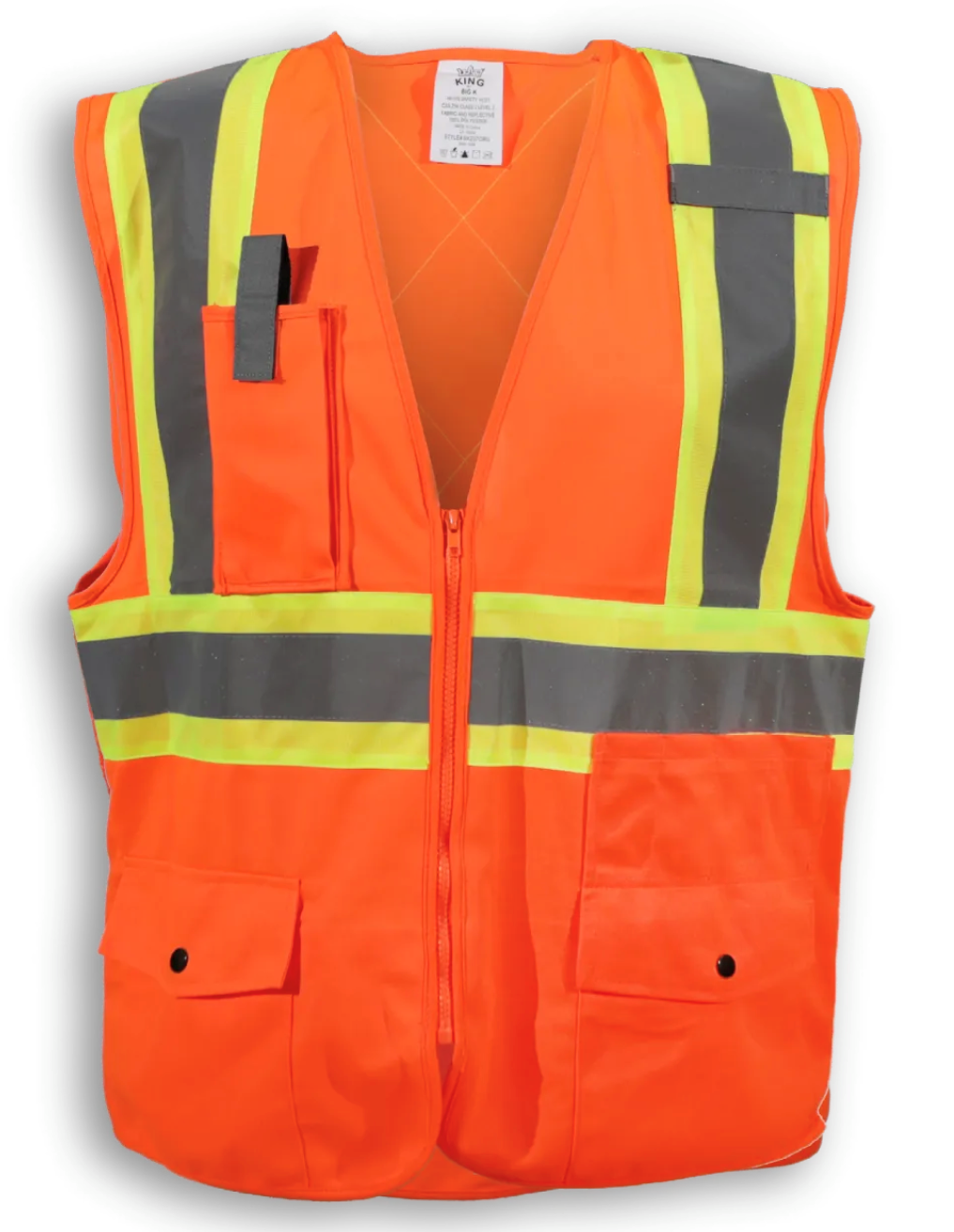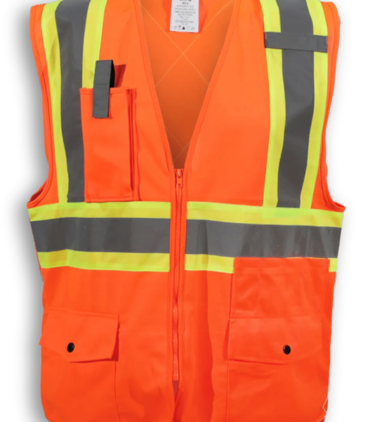 This 100% polyester vest with zipper front has 2 bottom pockets, a breast pocket, a clear ID pocket, and a back pocket. Featuring 4” reflective tape, it meets CSA Z96-22 Class 2, Level 2 standards. Product Specification PDF