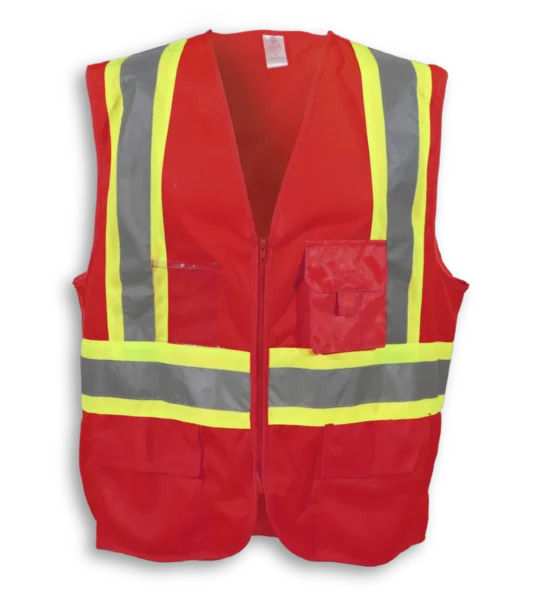 This 100% polyester vest comes with zipper front, has 2 bottom pockets, a breast pocket and a clear ID pocket. It includes 4” reflective tape and meets CSA Z96-22 Class 2, Level 2 standards.